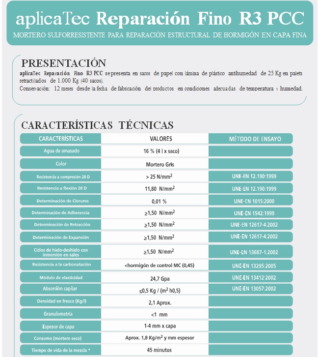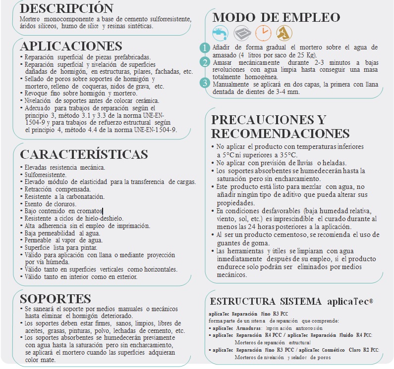 Comprar Mortero Sulforresistente aplicaTec reparación estructural hormigon C.Fina R3 PCC CLICKBUY - APLICA MORTEROS - CEMENTOS CAPA