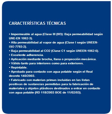 Mortero bicomponente impermeabilizante a base de cementos,áridos silíceos, resinas sintéticas y aditivos.